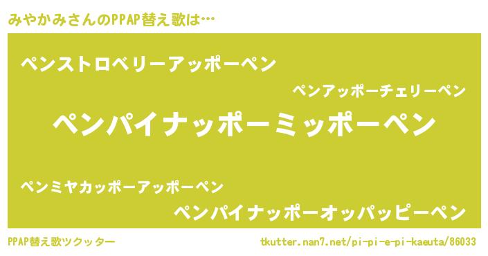 | 意味不明あだ名 | 『永久保存みやかみ』『ペロリンみやかみ』 |