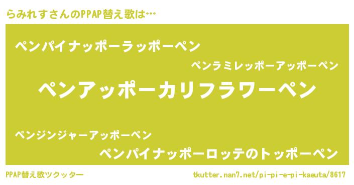 | 意味不明あだ名 | 『らみれすフォーエバー』『自称らみれす』 |