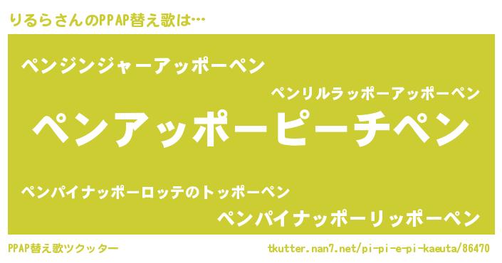 | 意味不明あだ名 | 『りるらフォーエバー』『ペロリンりるら』 |