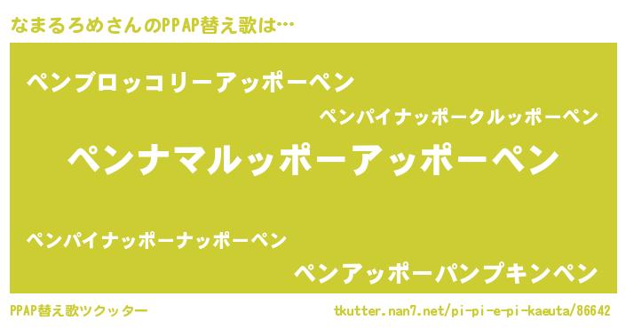| 意味不明あだ名 | 『自称なまるろめ』『ペロリンなまるろめ』 |