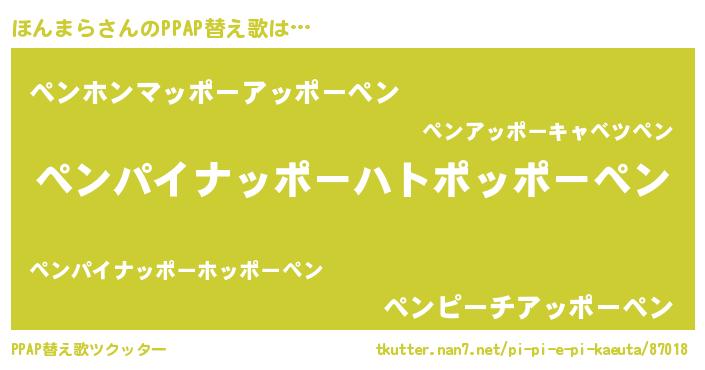 | ピコ太郎風あだ名 | 『ホホ太郎』『ホン五郎』『ホコ史郎』 |