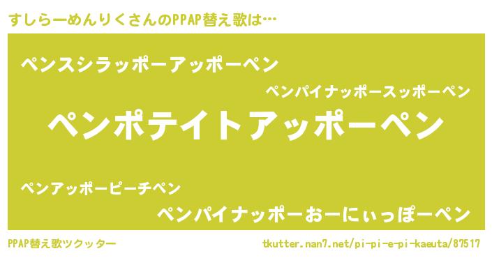 | ピコ太郎風あだ名 | 『スコ四郎』『スシ二郎』『スス太郎』 |