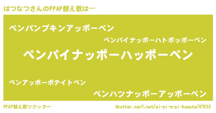 | ピコ太郎風あだ名 | 『ピコハ郎』『ハコ一郎』『ハツ太郎』 |