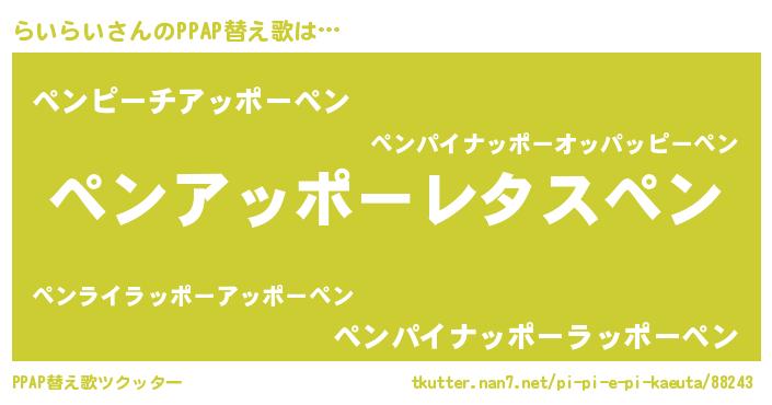 | 肩書あだ名 | 『らいらい大統領』『らいらい社長』 |