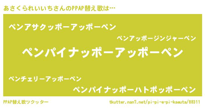 | ピコ太郎風あだ名 | 『ピコア郎』『アサ三郎』『アア太郎』 |