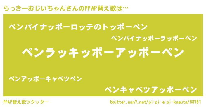 | 料理風あだ名 | 『らっきーおじいちゃんのカルパッチョ風』 |