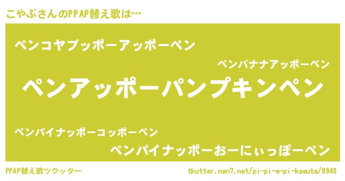 | ピコ太郎風あだ名 | 『ピコ二郎』『コヤ四郎』『ココ太郎』 |