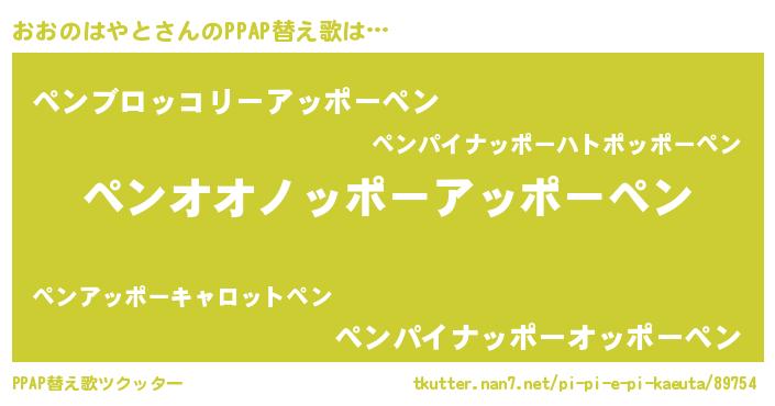 | 欧米人風あだ名 | 『ウサインおおのはやと』 |
