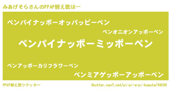| ヘコむあだ名 | 『みあげそら(遠い目)』『みあぷりん』 |