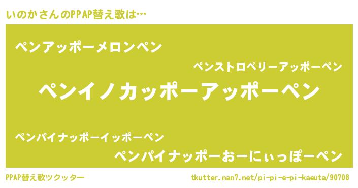 | ピコ太郎風あだ名 | 『イノ三郎』『ピイ次郎』『イイ太郎』 |