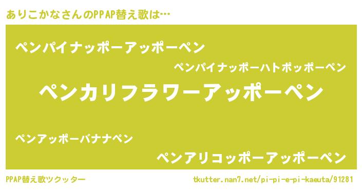 | ヘコむあだ名 | 『ありにゅー』『ありこかな(小並感)』 |