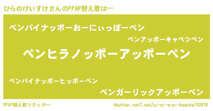 | 意味不明あだ名 | 『住所不定無職ひらのけいすけ(68歳)』 |