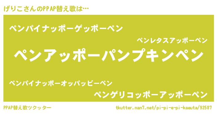 | 欧米人風あだ名 | 『ダレノガレげりこ』『げりこクリステル』 |