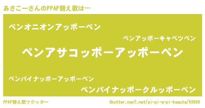 | ピコ太郎風あだ名 | 『アサ太郎』『アコ六郎』『アア太郎』 |