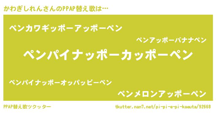 | 胡散臭い通販商品みたいなあだ名 | 『絶対に幸福をもたらす健康食品…その名も「かわぎしれん」』 |