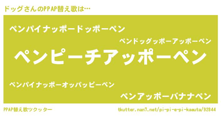 | 男性向けラノベタイトル風あだ名 | 『ドッグに滅ぼされるだけの簡単なお仕事です』 |