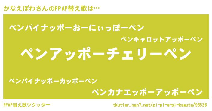 | 欧米人風あだ名 | 『かなえぽわ・ステッグマイヤー』 |