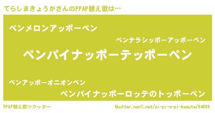 | 伝説のあだ名 | 『古文書に記された勇者てらしまきょうか』 |