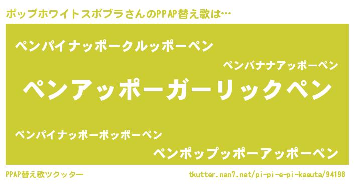 | 意味不明あだ名 | 『ポップホワイトスポブラフォーエバー』 |