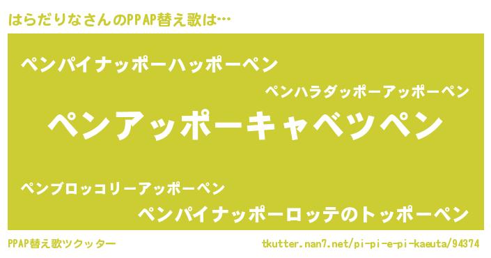 | ピコ太郎風あだ名 | 『ピハ四郎』『ピコハ郎』『ハハ太郎』 |