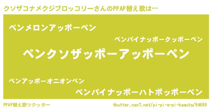 | 欧米人風あだ名 | 『ダレノガレクソザコナメクジブロッコリー』 |