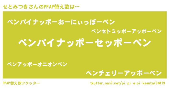 | 意味不明あだ名 | 『永久保存せとみつき』『自称せとみつき』 |