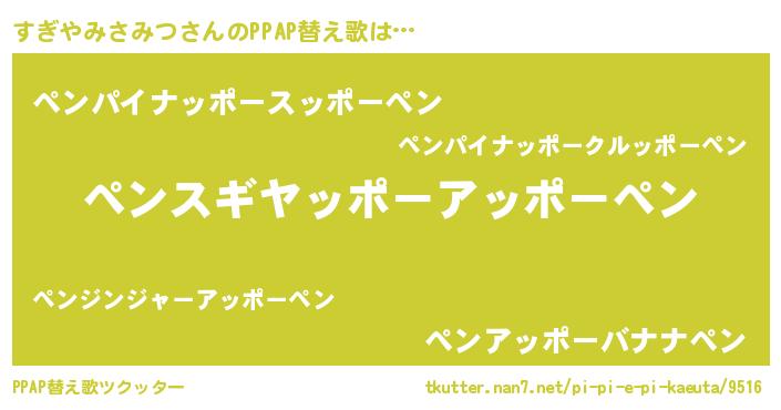 | 胡散臭い通販商品みたいなあだ名 | 『信頼と実績のサプリメント…その名も「すぎやみさみつ」』 |