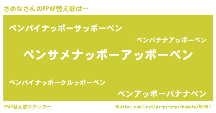 | 欧米人風あだ名 | 『ウサインさめな』『ケンブリッジさめな』 |