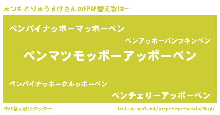 | 男性向けラノベタイトル風あだ名 | 『まつもとりゅうすけ~年齢イコール彼女いない歴の魔法使い~』 |