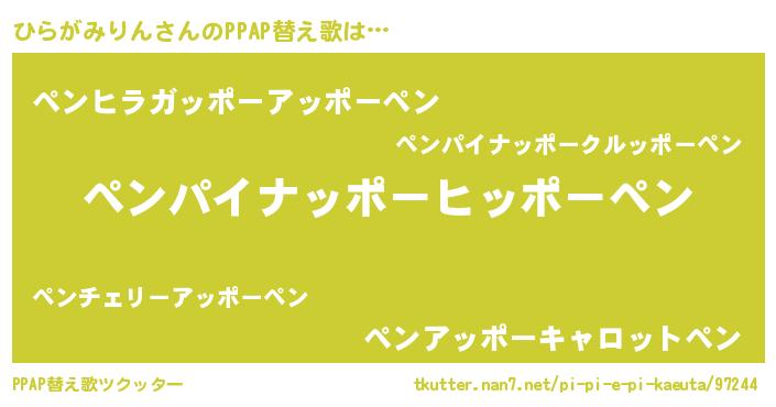 | 欧米人風あだ名 | 『ケンブリッジひらがみりん』 |