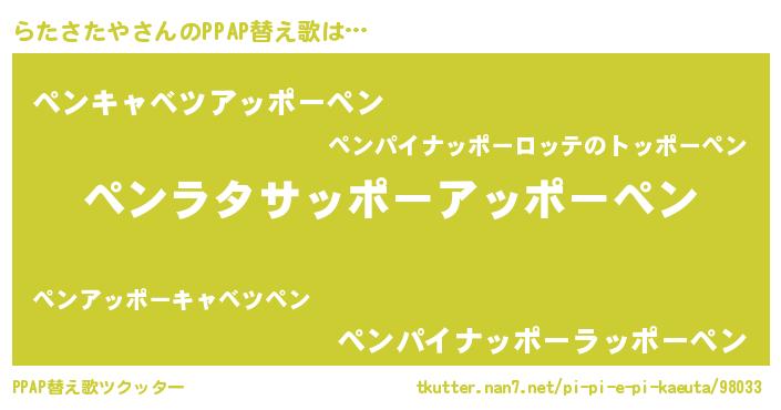 | 意味不明あだ名 | 『自称らたさたや』『ペロリンらたさたや』 |