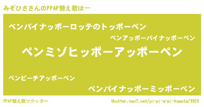 | ピコ太郎風あだ名 | 『ミゾ八郎』『ミミ太郎』『ピコミ郎』 |