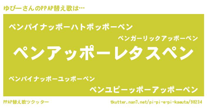 | ピコ太郎風あだ名 | 『ピユ四郎』『ユユ太郎』『ユピ六郎』 |