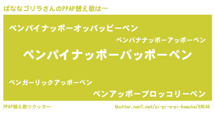 | 男性向けラノベタイトル風あだ名 | 『転生したらばななゴリラだった件』 |