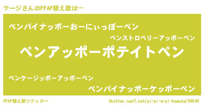 | 意味不明あだ名 | 『ケージフォーエバー』『永久保存ケージ』 |