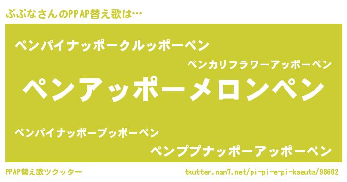 | 男性向けラノベタイトル風あだ名 | 『魔弾の王とぷぷな』『ププナスレイヤー』 |