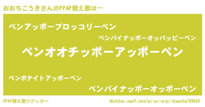 | ピコ太郎風あだ名 | 『オオ一郎』『ピオ二郎』『ピコオ郎』 |