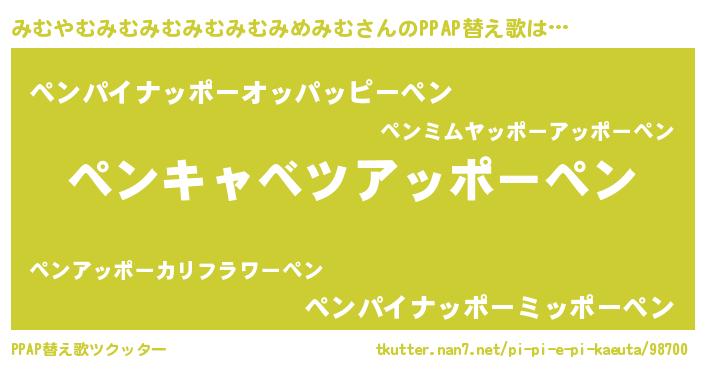 | 料理風あだ名 | 『みむやむみむみむみむみむみめみむのカルパッチョ風』 |