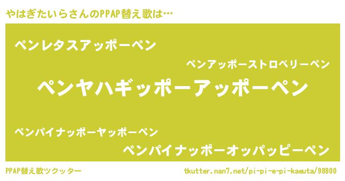 | ピコ太郎風あだ名 | 『ヤハ一郎』『ヤコ史郎』『ヤヤ太郎』 |