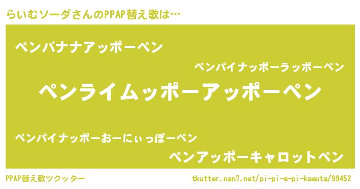| 意味不明あだ名 | 『とにかく怪しいらいむソーダ』 |