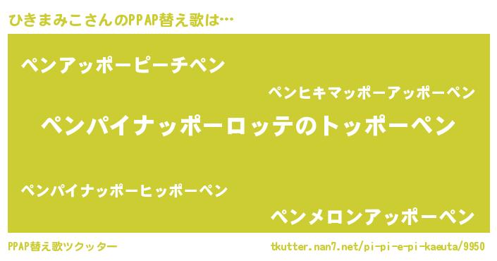 | 意味不明あだ名 | 『自称ひきまみこ』『ペロリンひきまみこ』 |