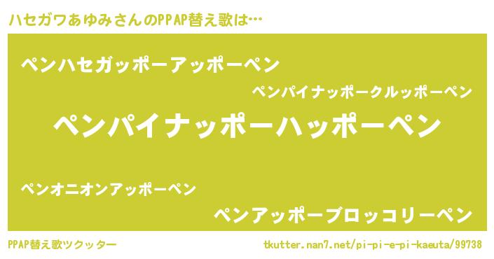 | ピコ太郎風あだ名 | 『ピコハ郎』『ハセ次郎』『ピハ十郎』 |