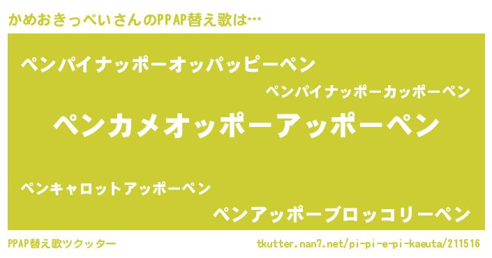 | 男性向けラノベタイトル風あだ名 | 『かめおきっぺいの嫁は女の子じゃないと思った?』 |