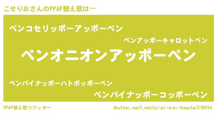 | 欧米人風あだ名 | 『こせりお・ステッグマイヤー』 |