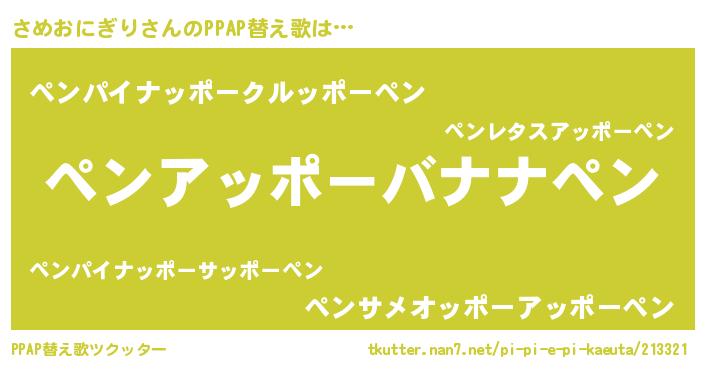 | 欧米人風あだ名 | 『さめおにぎりクリステル』 |