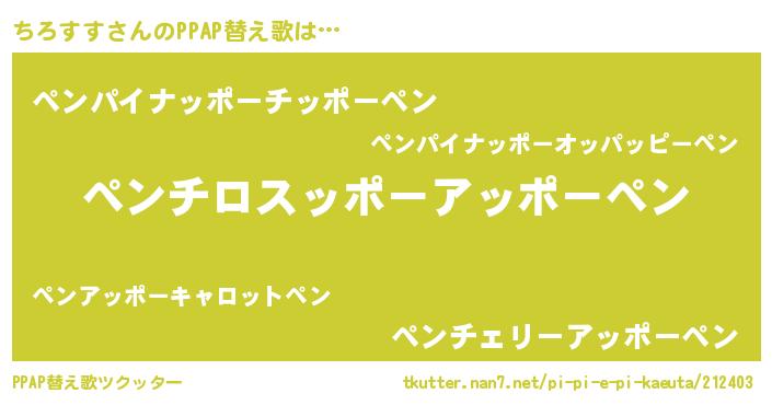| 意味不明あだ名 | 『住所不定無職ちろすす(98歳)』 |