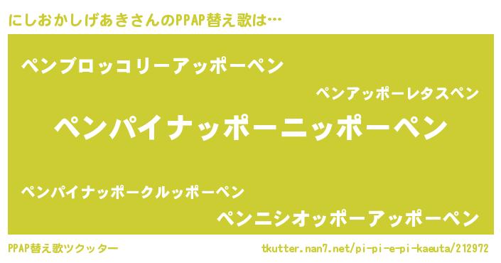 | ピコ太郎風あだ名 | 『ピコニ郎』『ニコ十郎』『ニシ五郎』 |