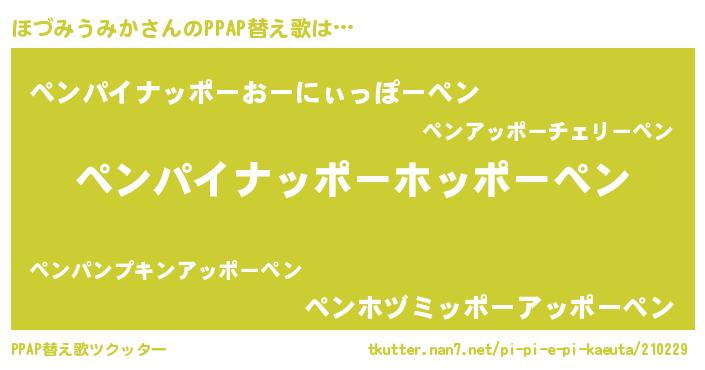 | ヘコむあだ名 | 『ほづみうみか(遠い目)』『ほづっぺ』 |