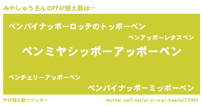 | ピコ太郎風あだ名 | 『ミヤ八郎』『ミミ太郎』『ピコミ郎』 |