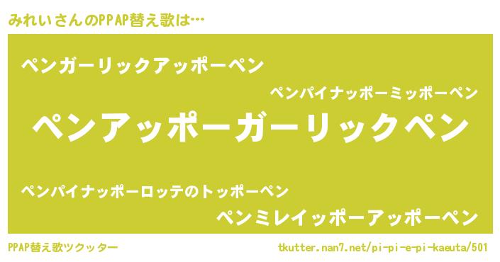 | ピコ太郎風あだ名 | 『ピミ十郎』『ミコ二郎』『ミレ五郎』 |